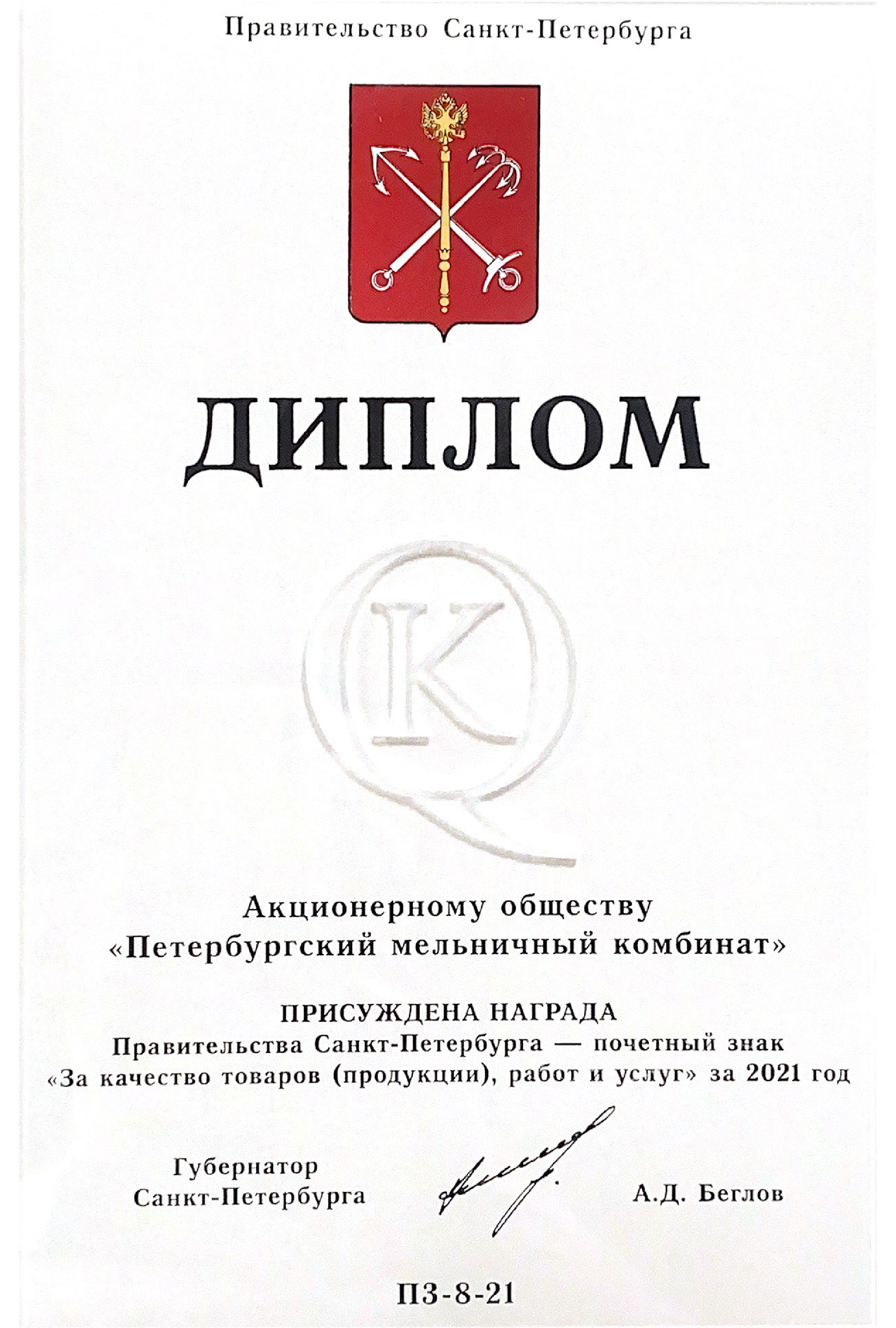 Первое место в конкурсе Правительства Санкт-Петербурга «За качество товаров (продукции), работ и услуг»